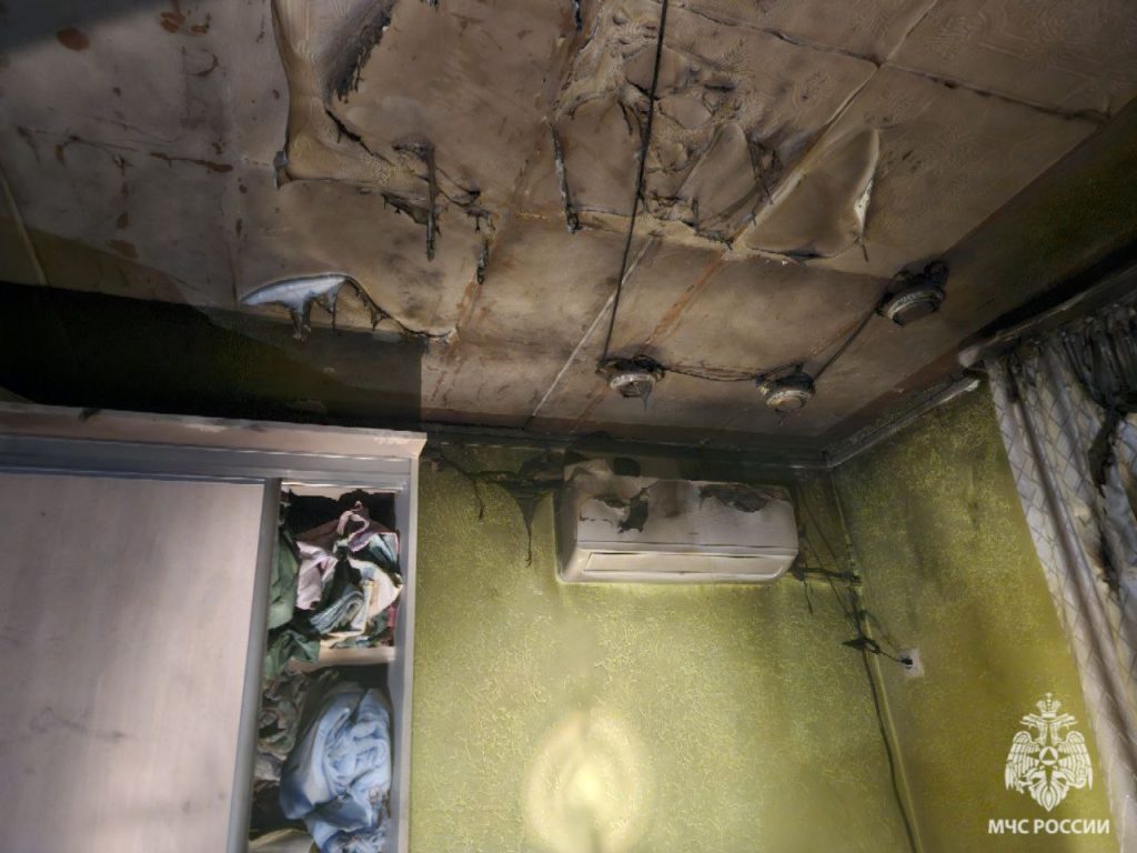 В Волжском произошел пожар в квартире на улице Коммунистической. По предварительным данным, возгорание началось из-за короткого замыкания осветительного прибора — огонь быстро перекинулся на натяжной потолок.
